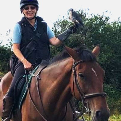 Janet loves Birds of Prey and Horses and as you can see by the picture, she's happiest when she can combine her two passions.